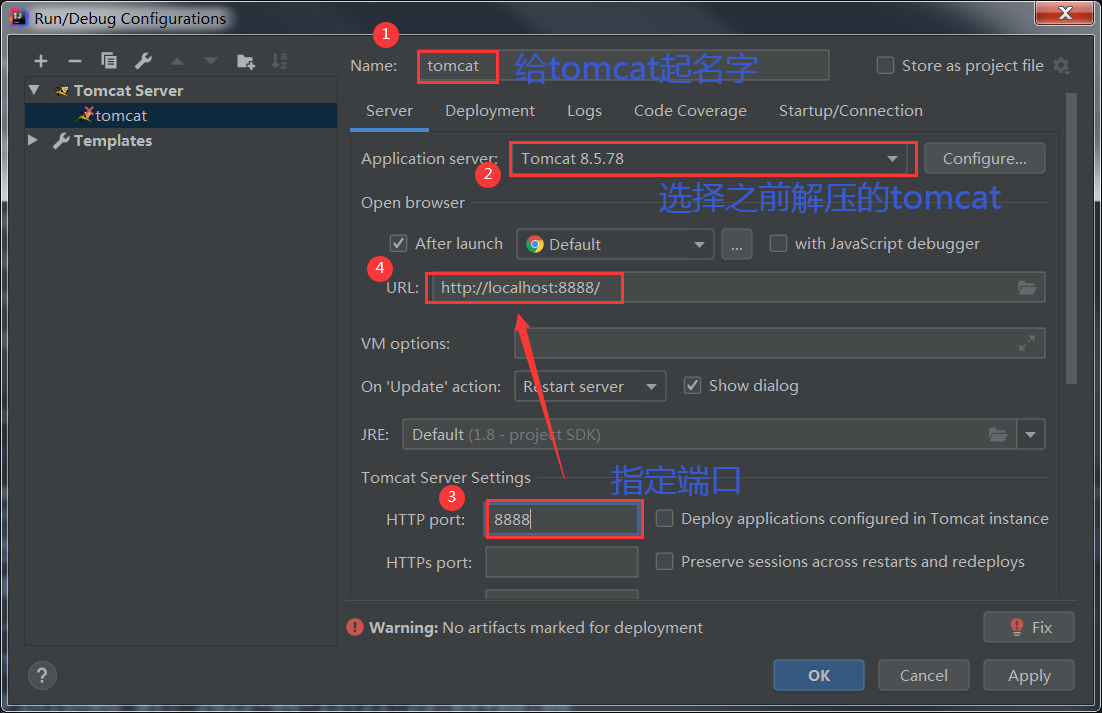 Tomcat参数配置:防止8080端口被占用,此处选用8888