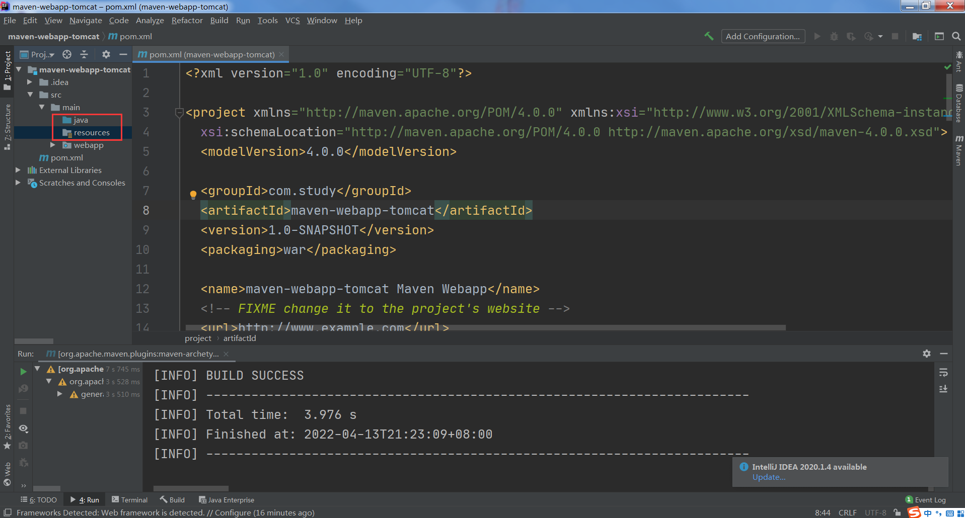 控制台出现BUILD SUCCESS表示项目Maven-webapp项目创建成功。