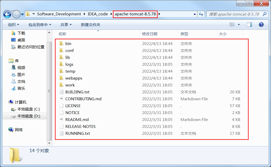 其中,zip格式为免安装版,此处直接点击zip格式文字处即可完成下载,下面的Source Code Distributions为对应的源代码。解压压缩文件后得到如下内容: