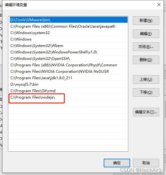 如果内部已经添加上了nodejs说明环境变量已经配置完毕。