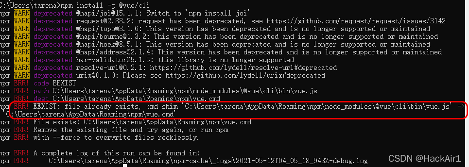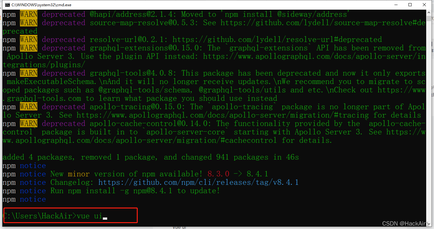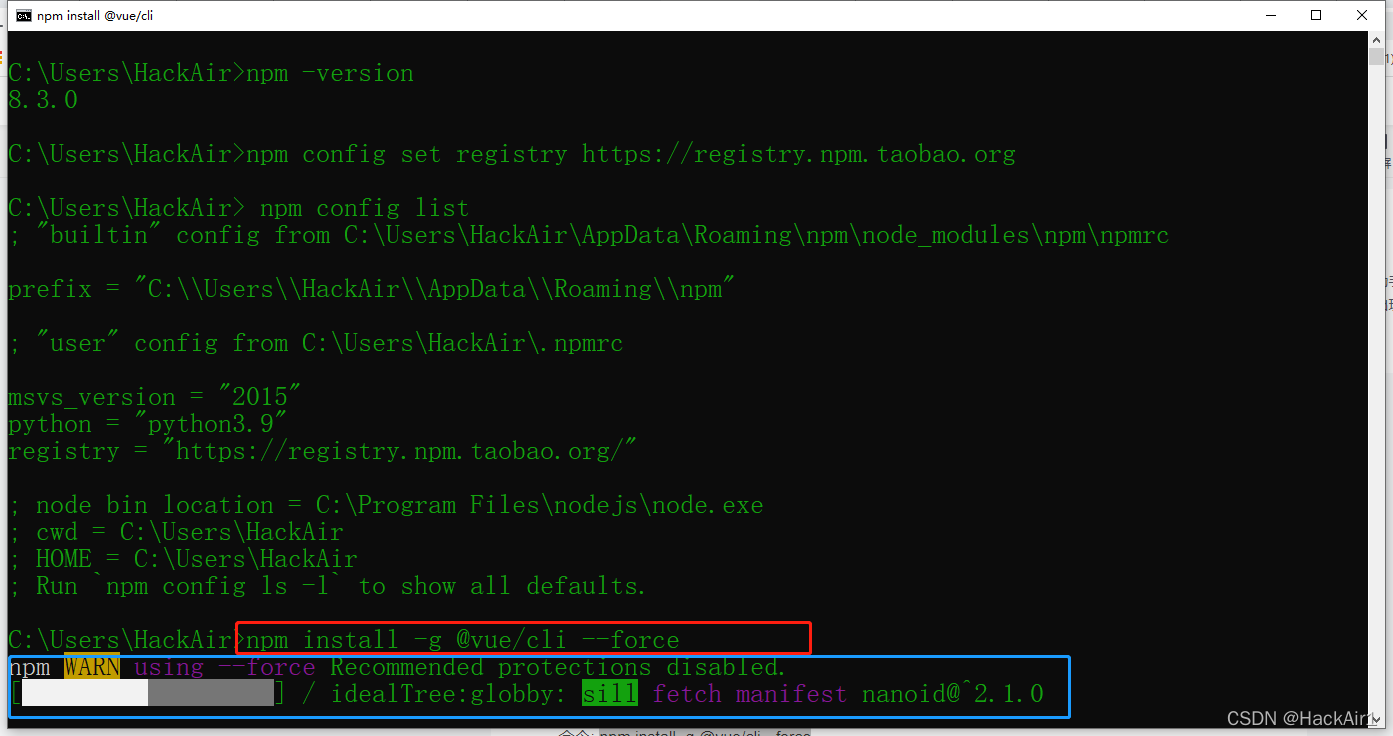 方案2): 执行卸载命令 npm uninstall -g @vue/cli 之后重新安装,即可。