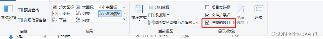 要注意此文件为隐藏文件,可以通过左上角的【查看】==>【隐藏的项目】勾选此选项如下图