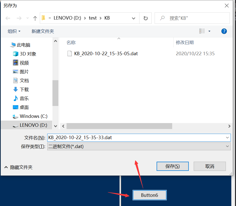 {// TODO: 在此添加控件通知处理程序代码//另存为://默认文件名:KB_Y-M-D_h-m-s.datSYSTEMTIME str;GetLocalTime(&str);CString  fileName;CString head = _T("KB");CString cs = _T("-");CString cs1 = _T("_");CString cs2 = _T(".dat");//用当前时间创建默认图片名称fileName.Format(_T("%s%s%2d%s%02d%s%02d%s%02d%s%02d%s%02d%s"), head, cs1, str.wYear, cs, str.wMonth, cs, str.wDay, cs1, str.wHour, cs, str.wMinute, cs, str.wSecond, cs2);BOOL bOpenFileDialog = FALSE;//格式:过滤器描述符(显示作用)+   + 文件扩展名称(过滤作用)//多个扩展名称之间用(;)分隔,两个过滤字符串之间以 分隔//最后的过滤器需要以两个  结尾TCHAR BASED_CODE szFilter[] = _T("二进制文件(*.dat)|*.dat|");//bOpenFileDialog   TRUE则显示打开文件对话框,FALSE则显示保存文件对话框。//lpszDefExt         指定默认的文件扩展名。//lpszFileName       指定默认的文件名。//dwFlags            指明一些特定风格。//lpszFilter         是最重要的一个参数,它指明可供选择的文件类型和相应的扩展名。//pParentWnd         为父窗口指针。CFileDialog fileDlg(bOpenFileDialog, _T("dat"), fileName,OFN_HIDEREADONLY | OFN_OVERWRITEPROMPT, szFilter, this);CString strFilePath;// 显示保存文件对话框   if (IDOK == fileDlg.DoModal()){	//取文件名全称,包括完整路径。strFilePath = fileDlg.GetPathName();}//CString-->const char*const char* fileKB;char temp[100];::wsprintfA(temp, "%ls", (LPCTSTR)strFilePath);fileKB = temp;MessageBox(CString(fileKB));//打开文件FILE* fileKBP = fopen(fileKB, "w+b");if (fileKBP == NULL){CFileException ex;TCHAR szError[1024];ex.GetErrorMessage(szError, 1024);MessageBox(szError);return;}Mat M4 = Mat(20, 20, CV_32FC1, Scalar::all(0.32));cout << "M4 = " << endl <(i);fwrite((char*)p, sizeof(float), M4.cols, fileKBP);}fclose(fileKBP);