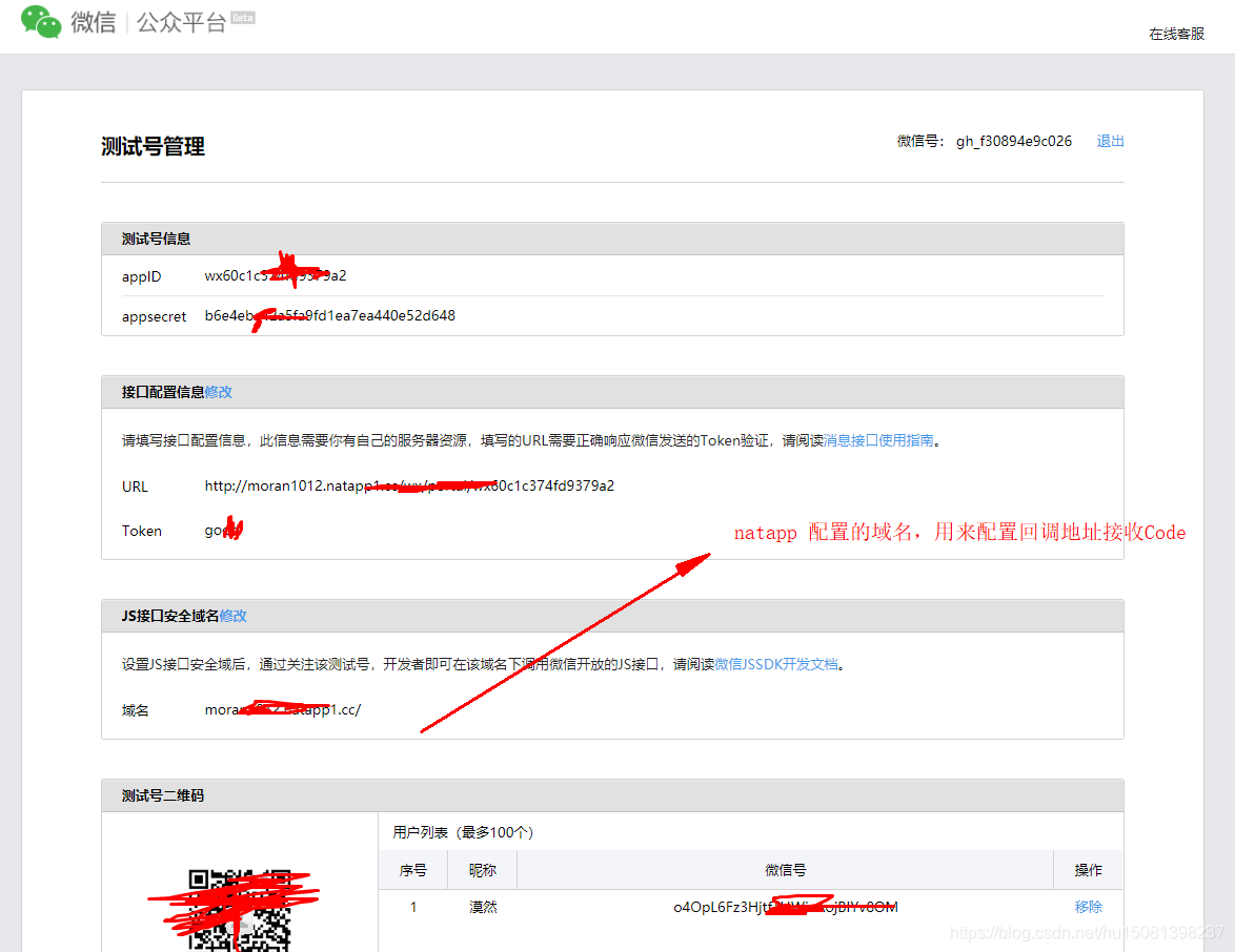 还有其中微信开发调试中用到的回调地址必须能够http访问,本人用的是natapp配置的