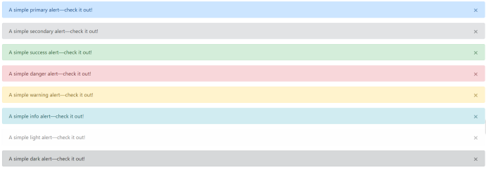 可以在右上角定义一个.close关闭按钮效果,则需要在容器中引用 .alert-dismissible 类。