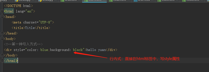 行内式是在标记的style属性中设定CSS样式。这种方式没有体现出CSS的优势,不推荐使用。