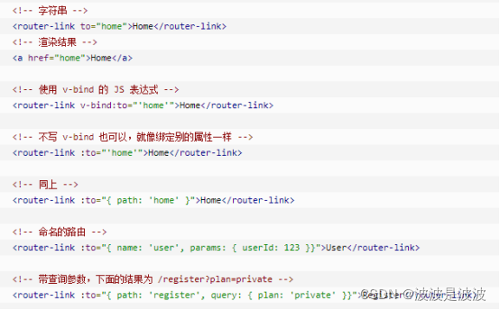 表示目标路由的链接。 当被点击后,内部会立刻把 to 的值传到 router.push(),所以这个值可以是一个字符串或者是描述目标位置的对象。