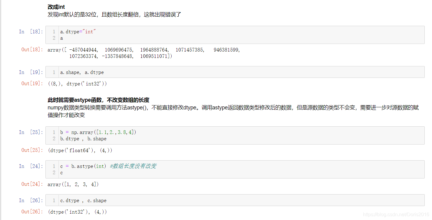 结论:NumPy修改数据类型,不能直接修改原数据的dtype,要使用astype函数转换,astype会返回一个新数组,它不会修改原数组。
