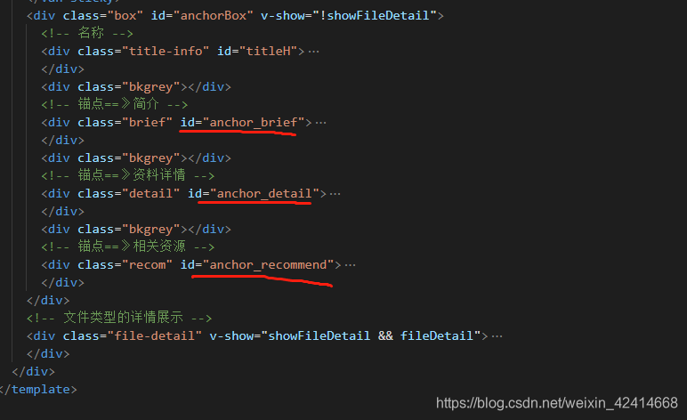 首先,实现第一个功能,给每个对应的div增加相应的id="anchor_",代码如下: