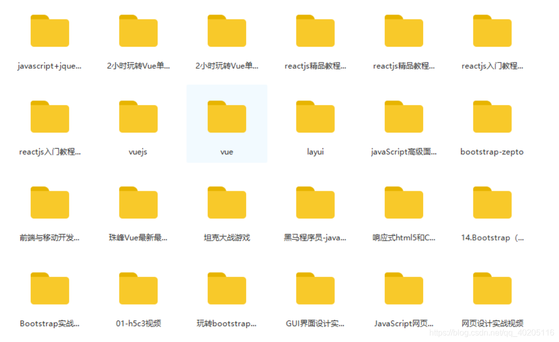 前面所说的都是一些后端的框架,这里说一下前端的一些框架。前端主要就是HTML、CSS、JavaScript,前端框架主要就是对CSS样式和JavaScript的一些封装,我们可以直接下载引用。前端框架有:bootstrap、Layui、easyUI等。bootstrap和layui样式很不错,比较灵活。easyUI的话,主要是封装的很全,用起来很简单,基本不需要自己写太多的代码。如果想走前端或者全栈的话,还需要学一下React、Vue、Angular这三个框架,这三个框架并不是都要学,学好一个就可以了,个人推荐学习Vue或者React。