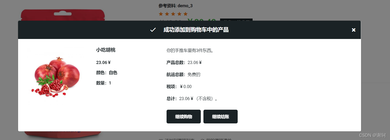这个二级菜单有——继续购物,结账 —— 两个按钮,