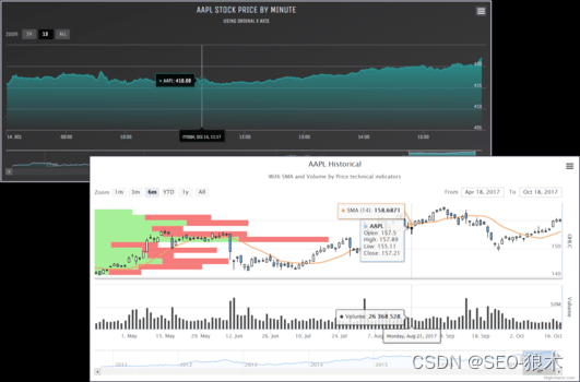 Highcharts Stock 是一个基于 SVG 的多平台图表库,基于 Highcharts,自 2009 年以来一直在积极开发。它可以轻松地将交互式、移动优化的金融图表添加到您的 Web 和移动项目中。它具有强大的文档、先进的响应能力和行业领先的可访问性支持。