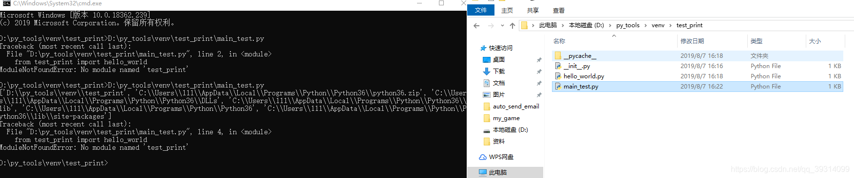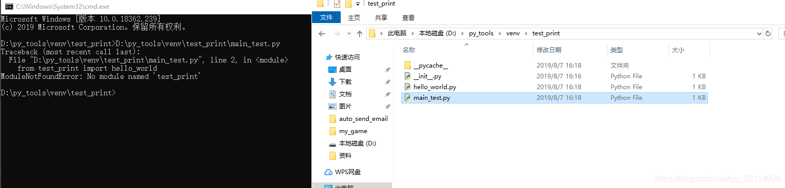 在cmd直接运行,报错如下。下面分析下原因。由于python执行的时候需要根据sys.path下能扫描到的包进行操作