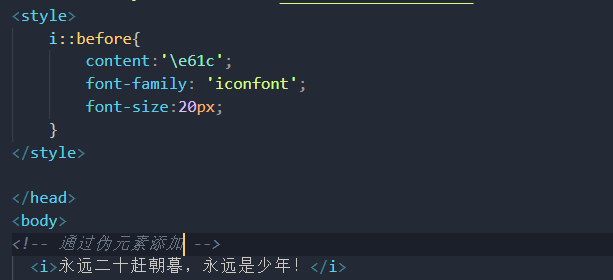 b. 再标签里面添加图标字体