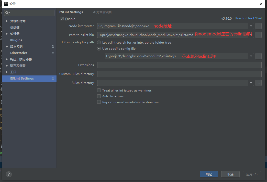 第二项配置当前项目中node_modules/.bin目录下的eslint.cmd,