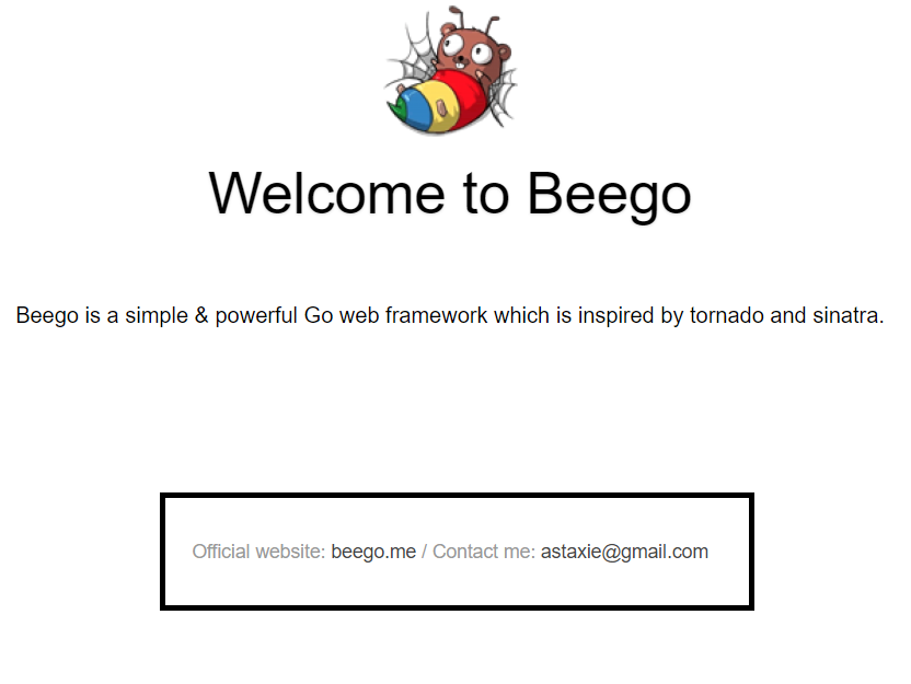 }func (c *MainController) Get() {c.Data["Website"] = "beego.me"c.Data["Email"] = "astaxie@gmail.com"c.TplName = "index.tpl"