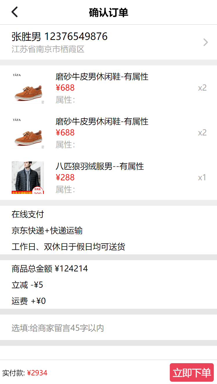 点击“立即下单”按钮,把信息提交到服务器,成功则跳转到支付方式页面