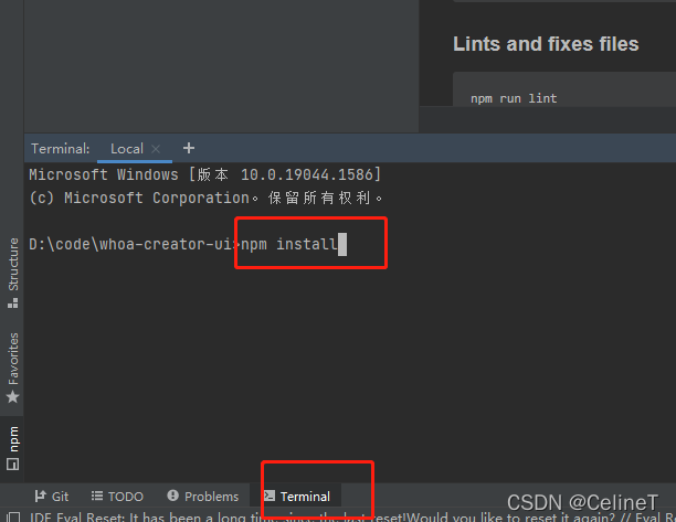 此时,可能可能会报错,尝试重新webstorm后,执行npm install或cnpm install