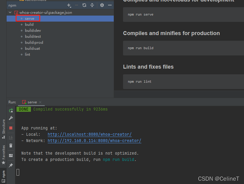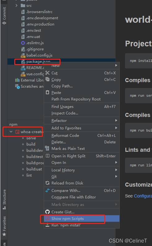 导入已经有vue项目,选中package.json文件,右击选中show npm scripts