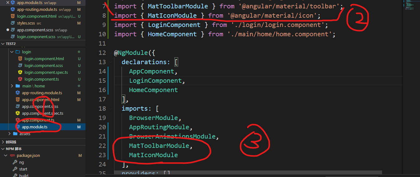 当在项目中打开控制台然后安装Material的时候,他直接会帮你把当前项目给改好的,把一些文件给引入