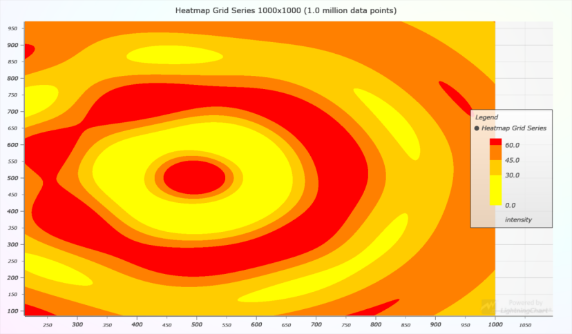此外,我们LightningChart最近主持了一个不同热图图表供应商和开源工具的公开性能比较。结果连我们自己都感到惊讶--我们的热图图表比一般的JS图表库(是的,商业的和开源的)要高效1000倍以上。