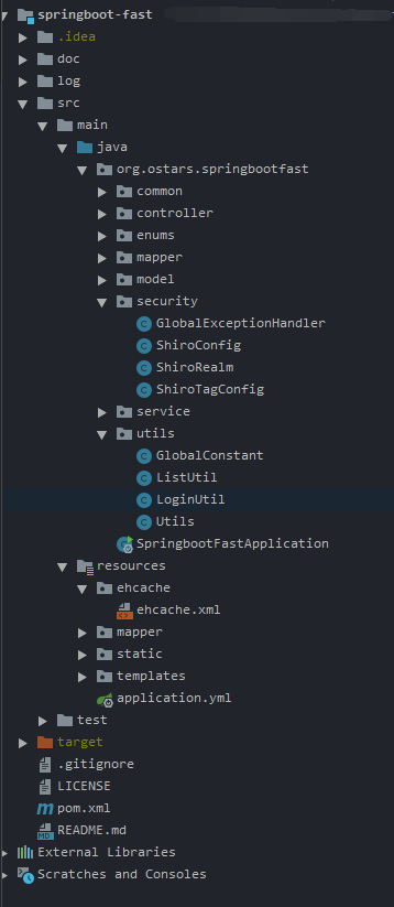 │ ├──java/org/ostars/springbootfast // Specific code.