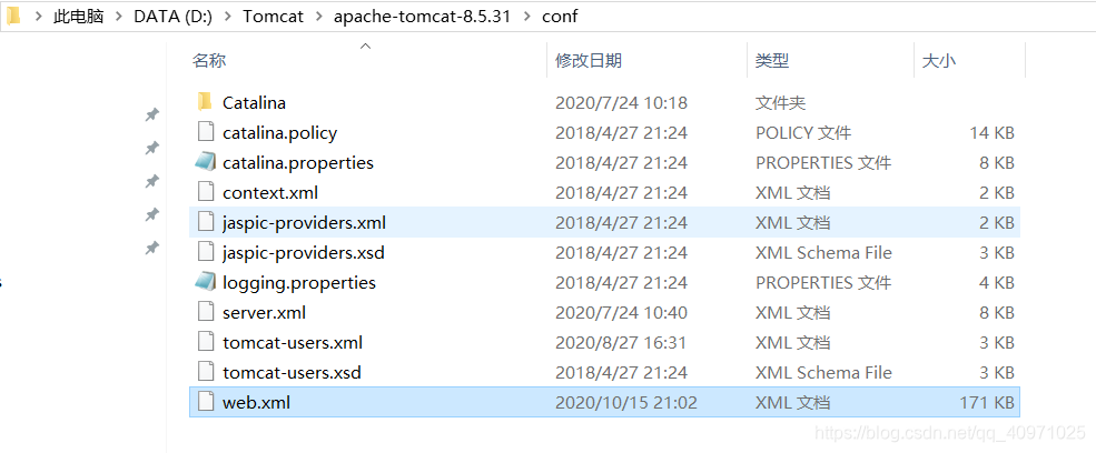 找到Tomcat的目录,依次打开/conf/web.xml文件