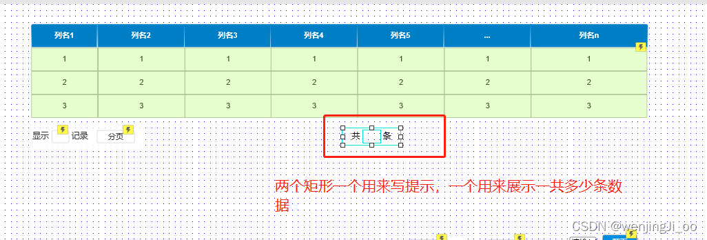 ①矩形1:展示用户提示:共 条;命名为“共n条提示框”