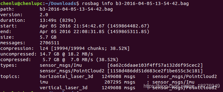 (1)官方自带的数据集2d和3d的都只包含以下几个话题:imu数据和激光雷达数据。