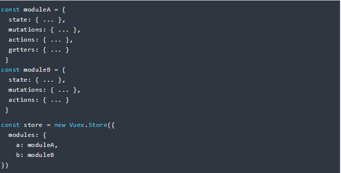 modules:项目特别复杂的时候,可以让每一个模块拥有自己的state、mutation、action、getters,使得结构非常清晰,方便管理。