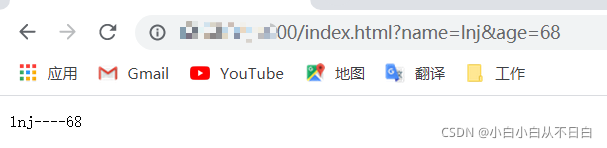 server.on("request", function(req, res) {// console.log(req.url);let obj = url.parse(req.url, true);res.end(obj.query.name + "----" + obj.query.age);