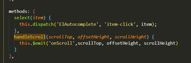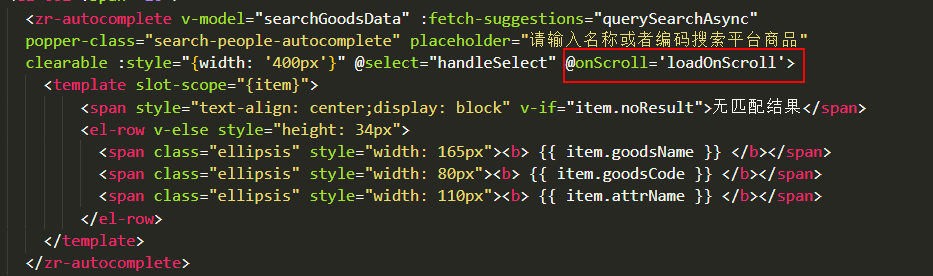3、直到el-atupcomplete组件中触发@onScroll事件,用来判断高度从而发请求从后台得到数据