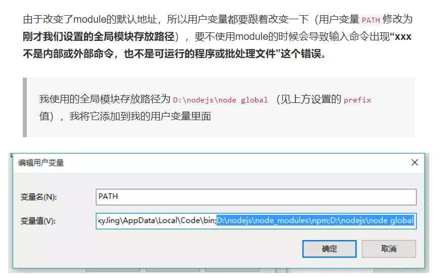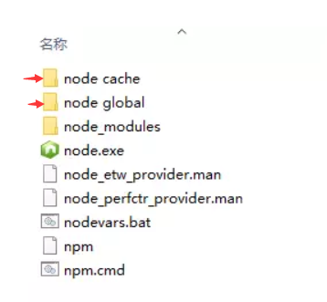 - 在nodejs安装文件夹中,新建node global 和 node cache(缓存配置的话,大家随意),如图:
