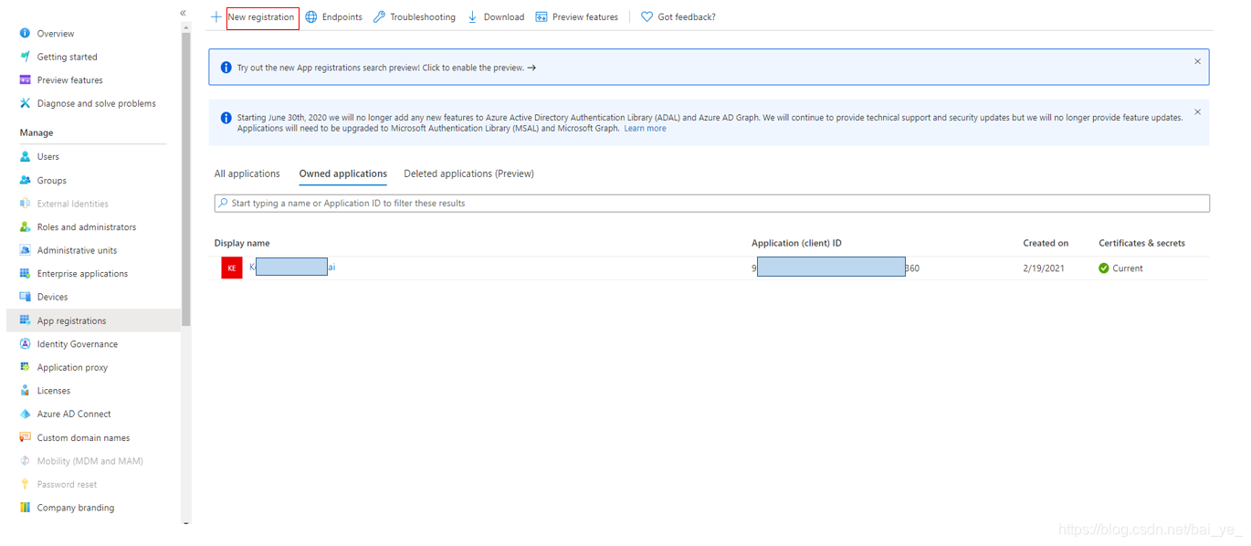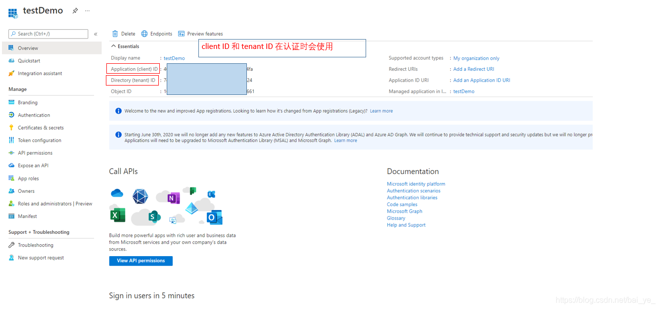 6.注册完成后如下,这里的client ID 和 tenant ID比较重要,之后的认证会使用到。