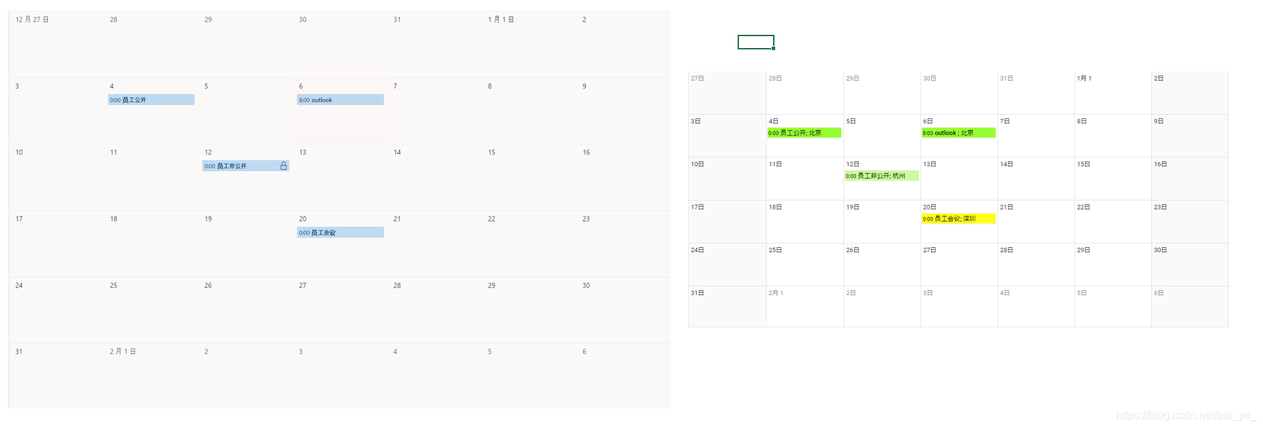 最后成果大致是这样,左边是outlook日历,右边是实现的效果。