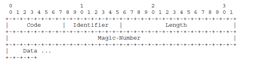 Echo-Request、Echo-Reply和Discard-Request包都有Magic-Number字段,如果Magic-Number已经产生,那么这些包发送时就必须将此填入。