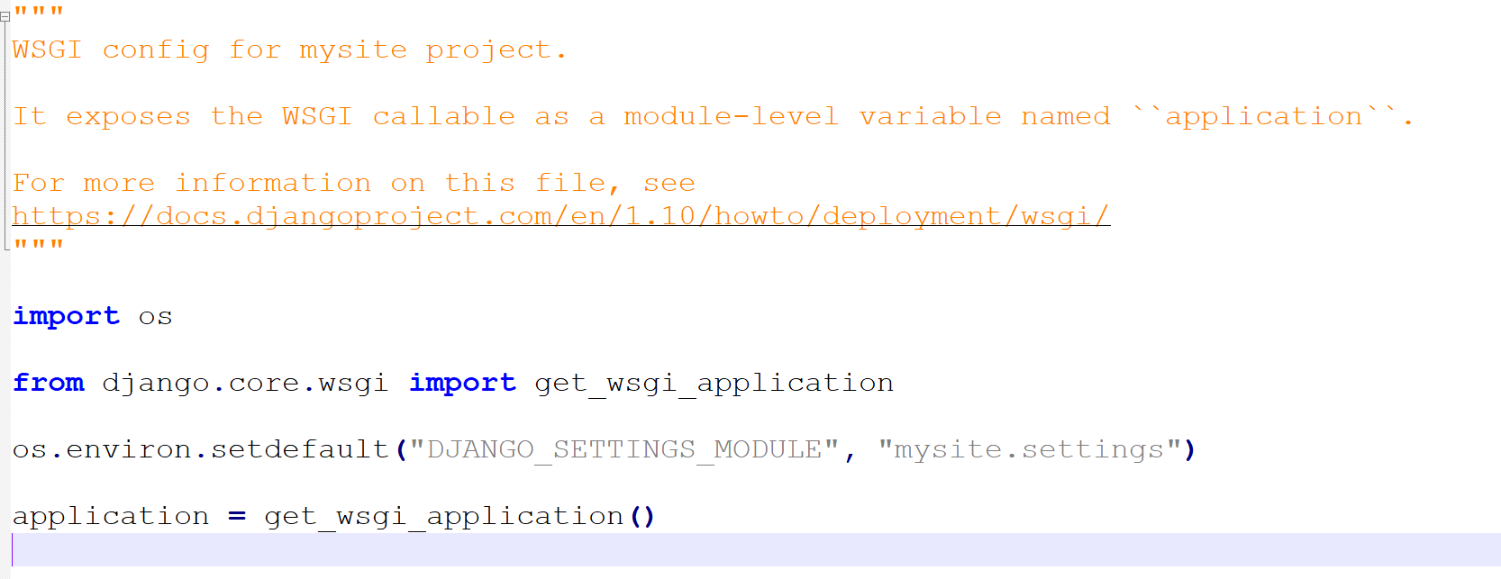 # 必须进入到项目wsgi所在目录,wsgi文件如下: