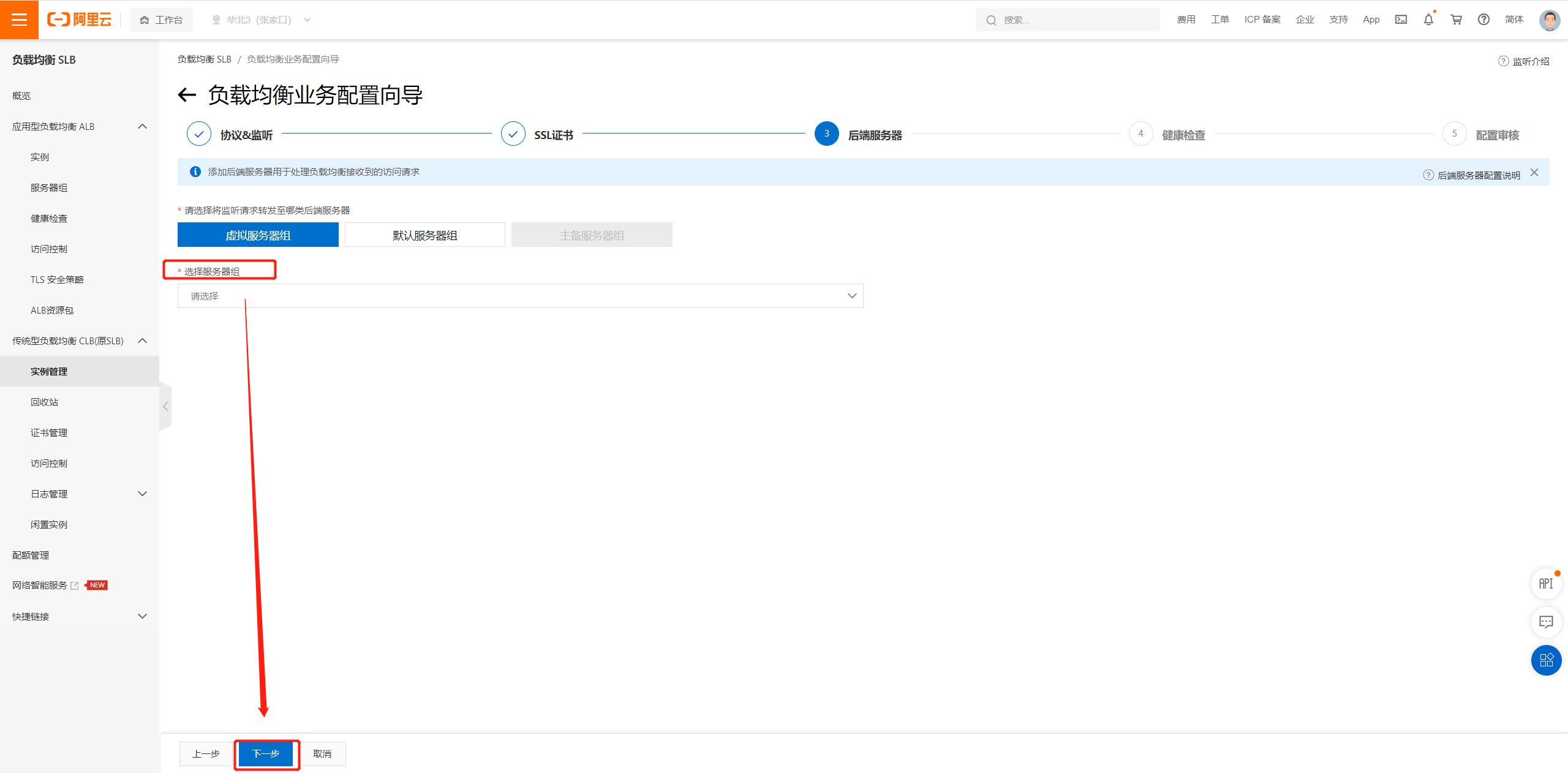 选择第一步新建的服务器组: