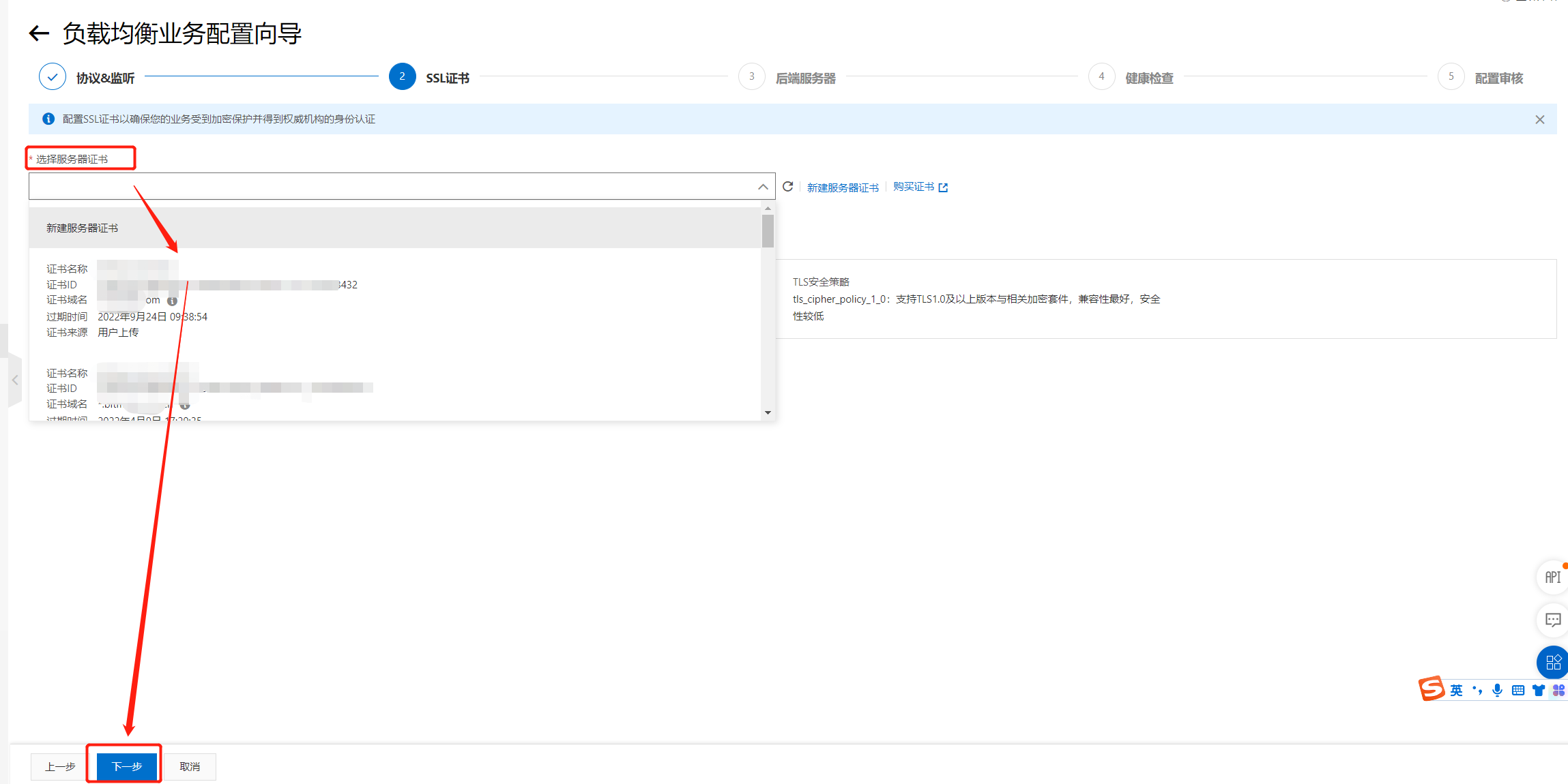 下一步, HTTPS需要配置证书: