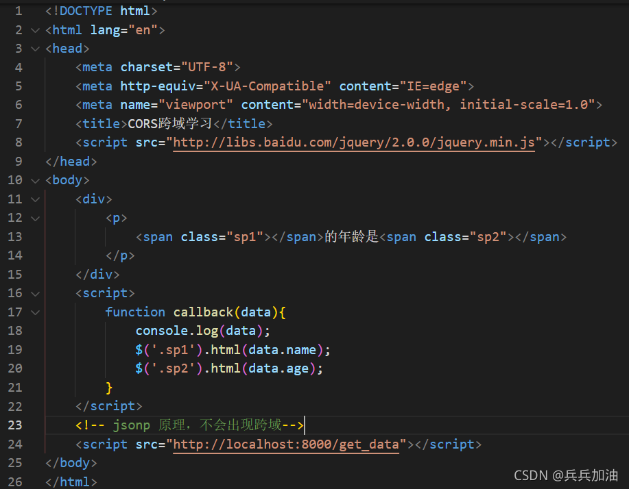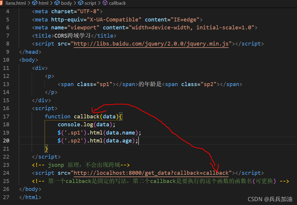 利用jsonp原理就能够得到我们想要的数据啦,当然前提是前端要与服务器进行配合,即需要服务器的许可,注意callback这个函数的写法。