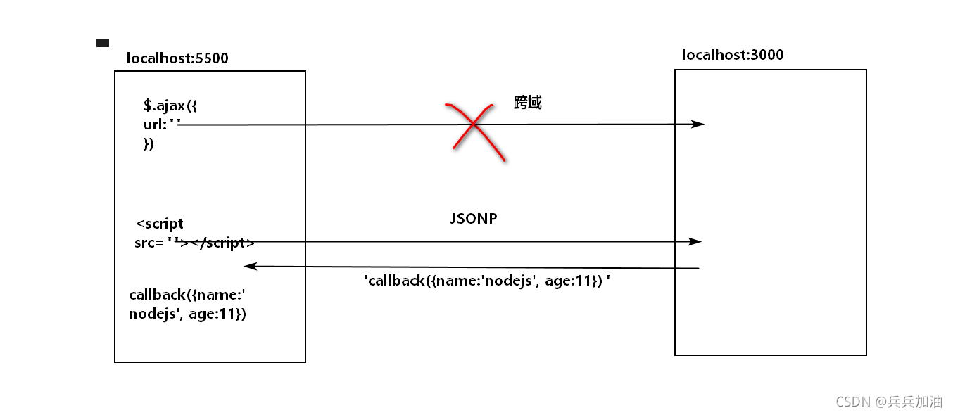 处理使用ajax代码发起请求外,页面某些标签也会自动发起请求。我们可以利用script标签的src属性,来发起请求,不会涉及跨域。