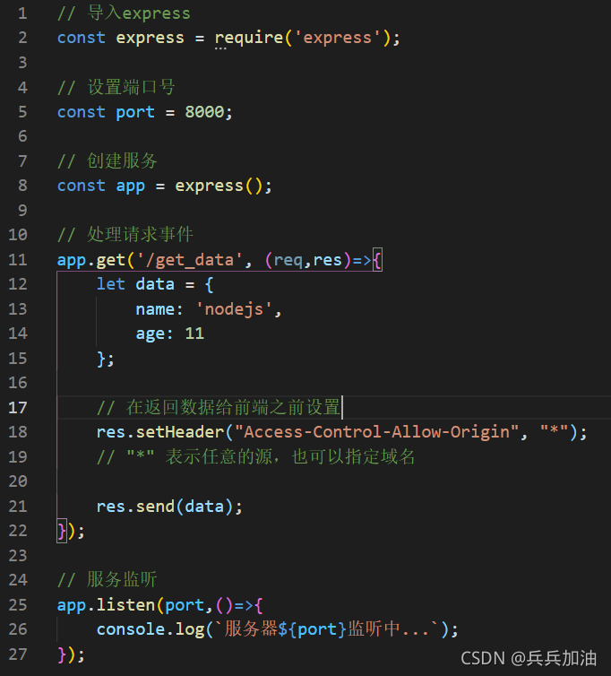 设置响应头:res.setHeader("Access-Control-Allow-Origin", "*")