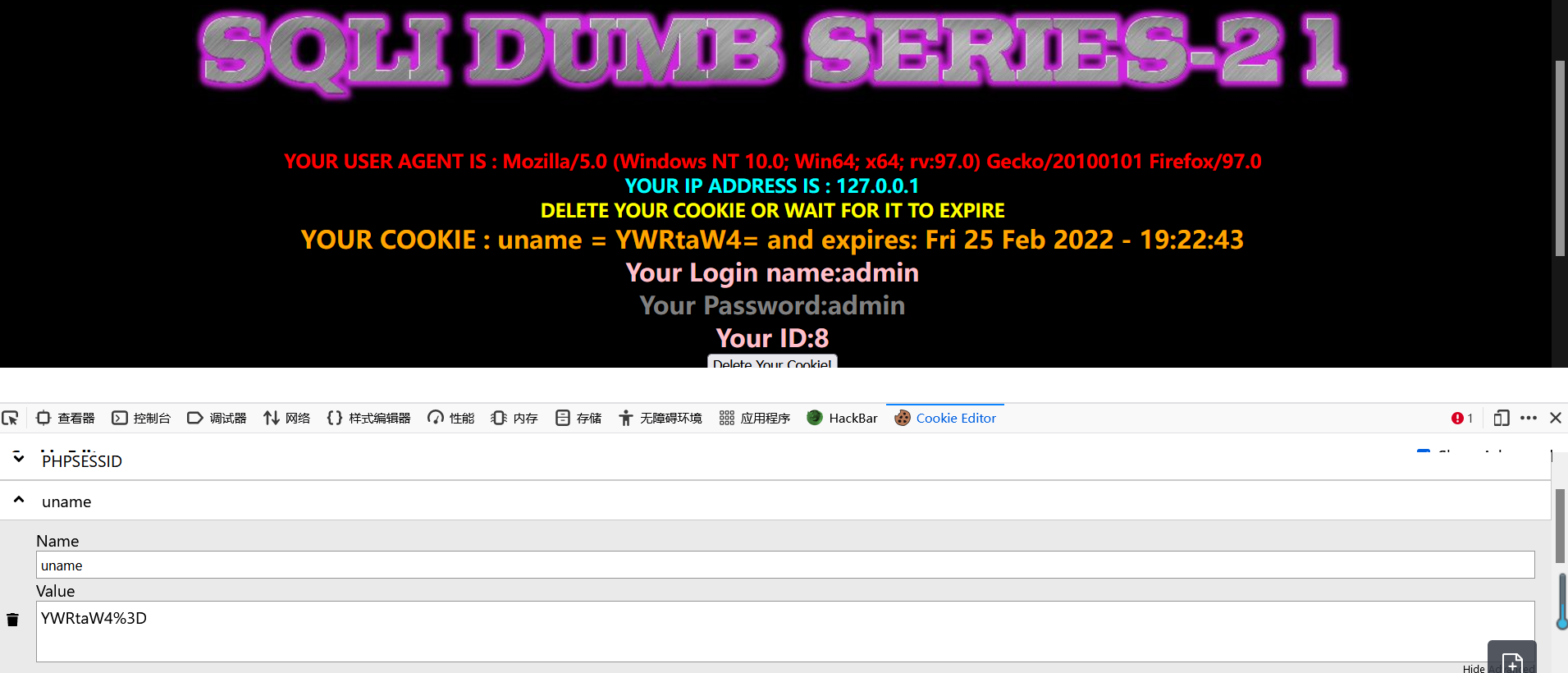 用admin登录进去,可以看出这是cookie注入,value一看就是加密过