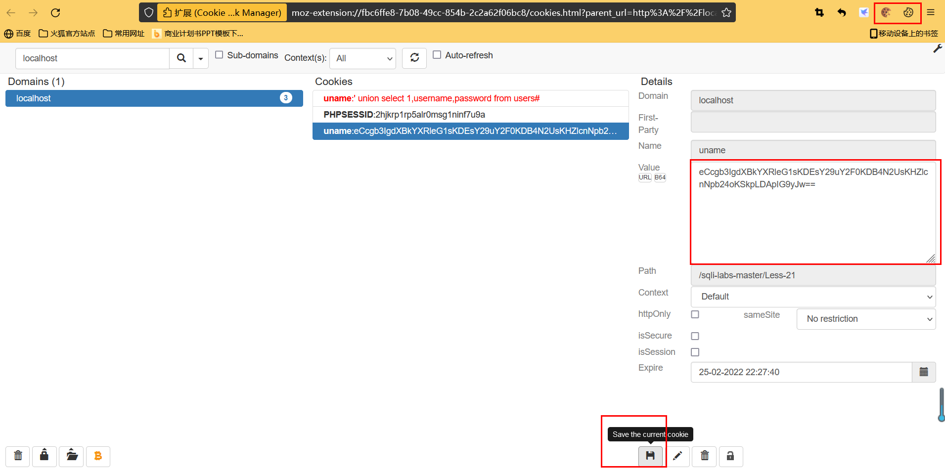 方法二:安装火狐的cookie manager等插件进行修改cookie
