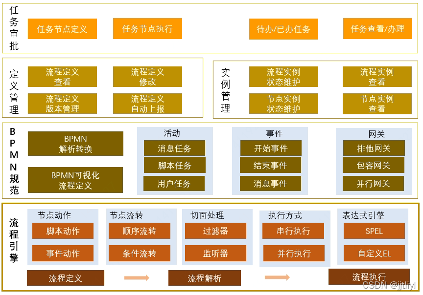 以上为JDEasyFlow的整体功能模块架构,各模块介绍如下: