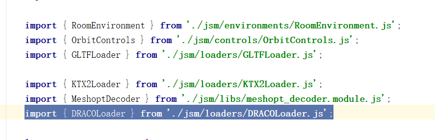 3.gltfLoader中设置DRACOLoader。运行可以加载