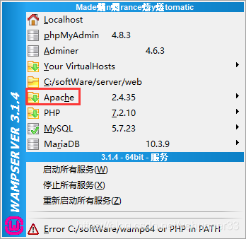 wampserver中的Apache、PHP、mysql配置