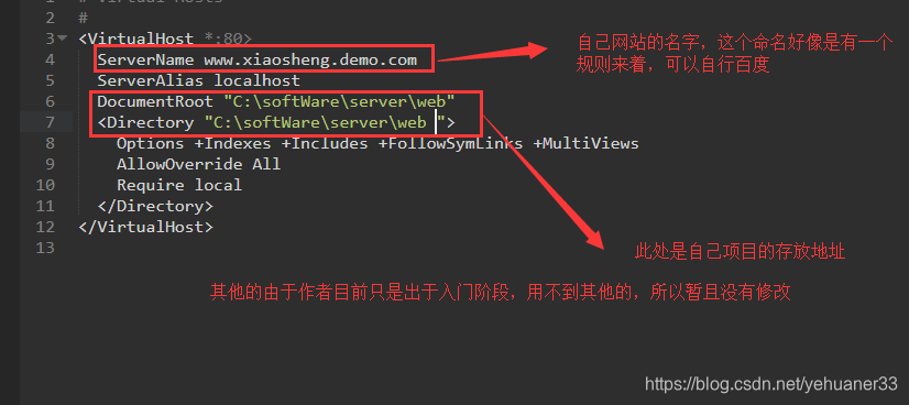打开Apache中的httpd.vhosts.conf文件,修改成下图: