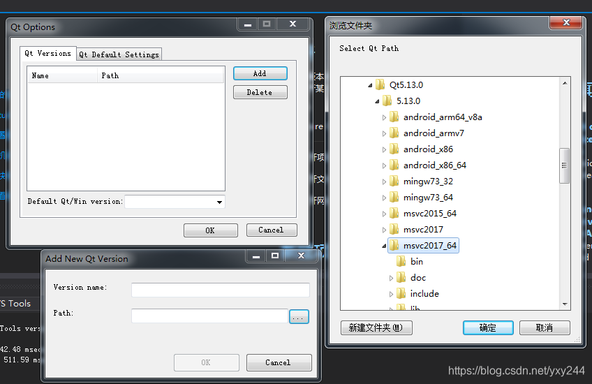 4.1点击Add,添加路径,选择QT目录里的MSVC,如图在QT的安装目录下找(根据自己电脑QT安装的位置)