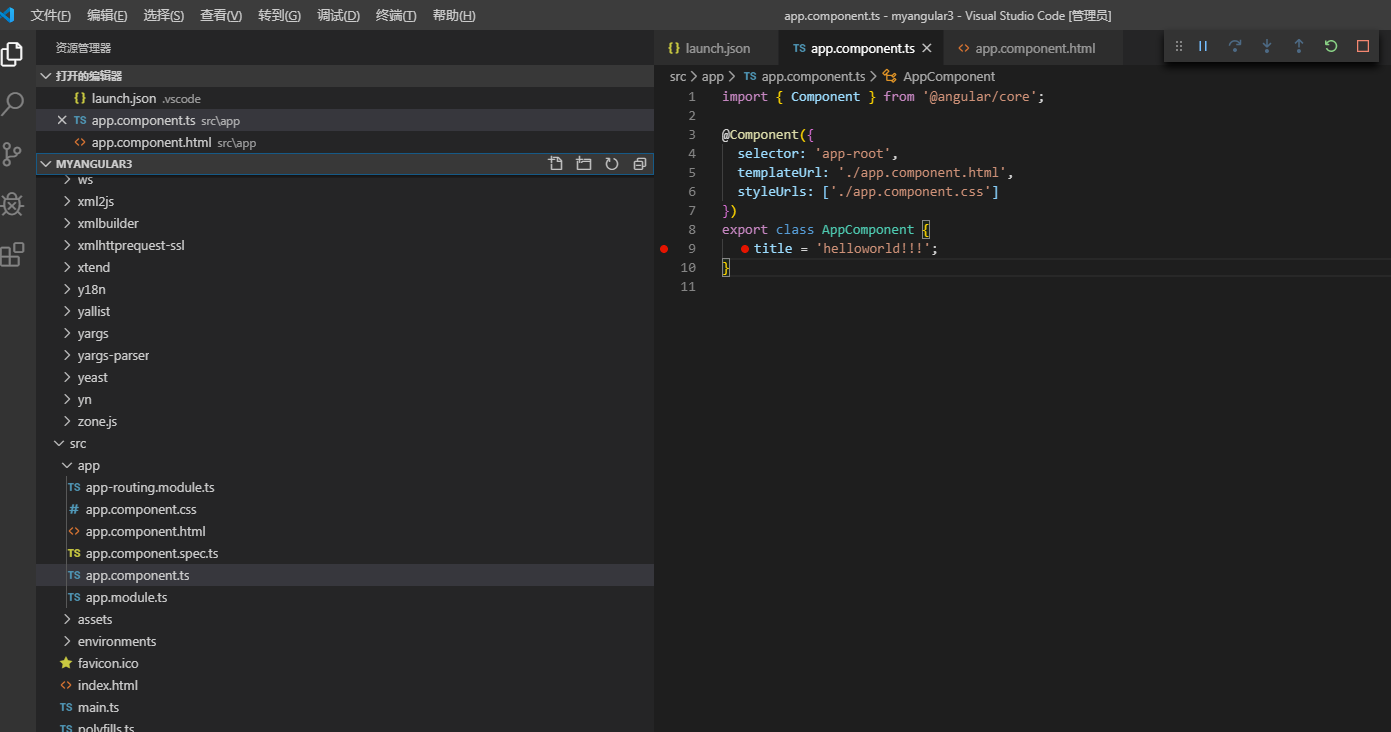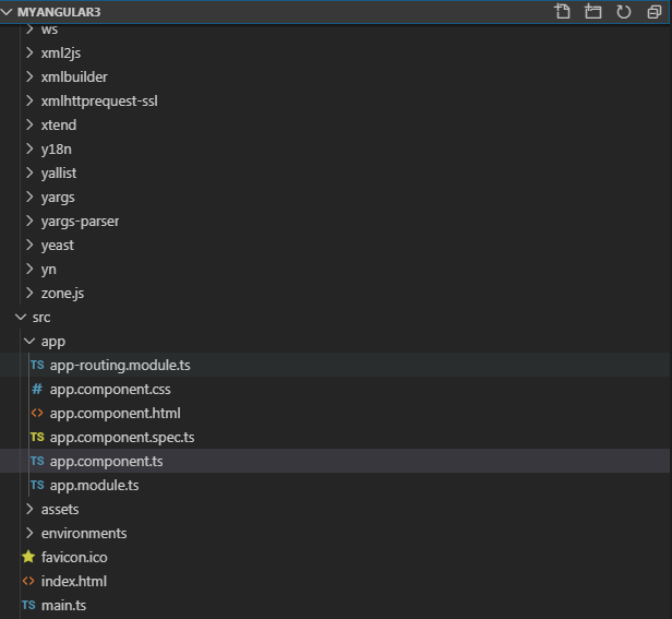 2.1 vscode里得选择myangular3文件夹打开,这样才能看到该项目的文件了
